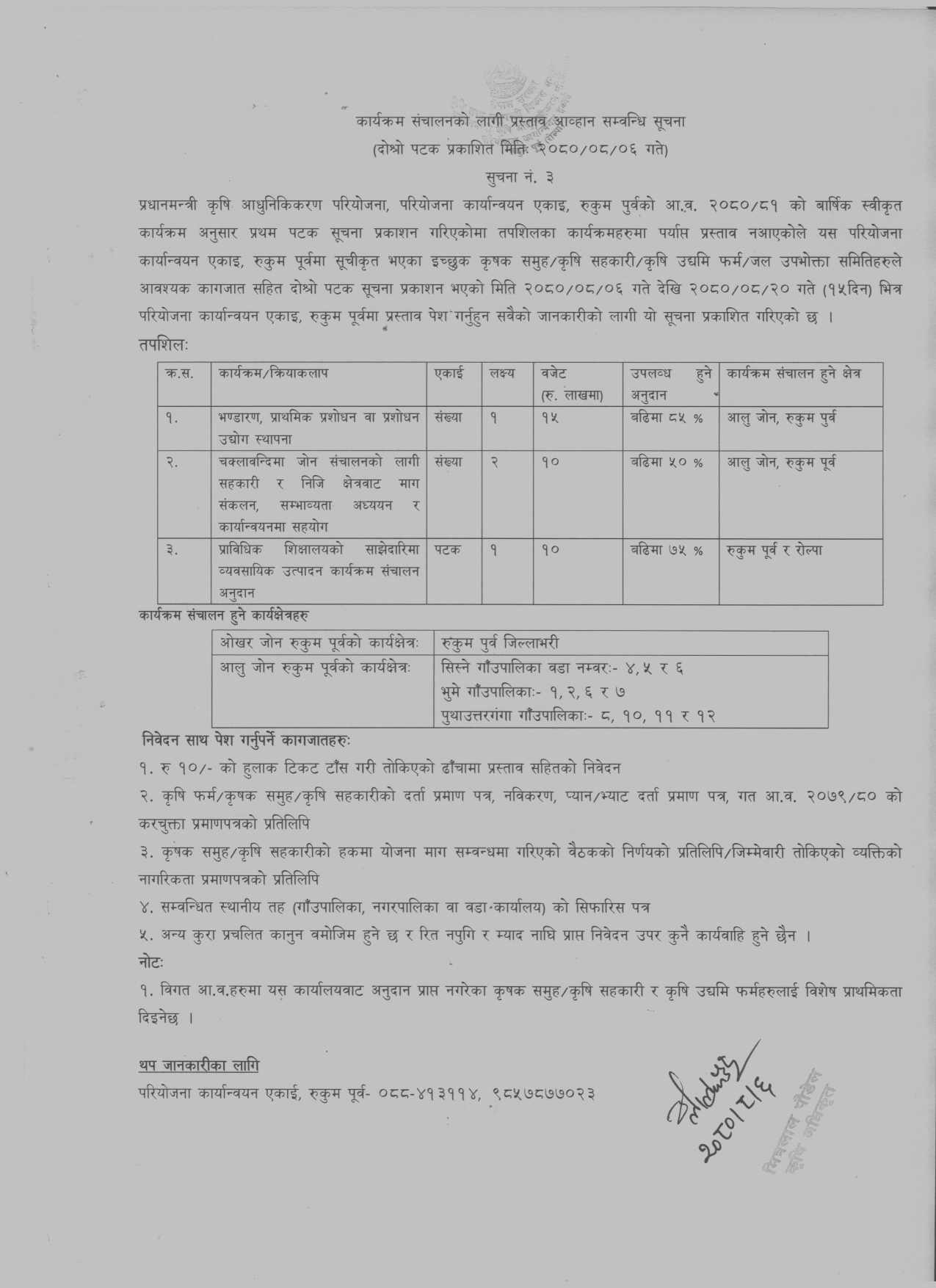 यस प्रधानमन्त्री कृषि आधुनिकीकरण परियोजना, परियोजना कार्यान्वयन एकाई, रुकुम पूर्व (रोल्पा)-कार्यक्षेत्र: (रुकुम पूर्व र रोल्पा) कार्यालयको